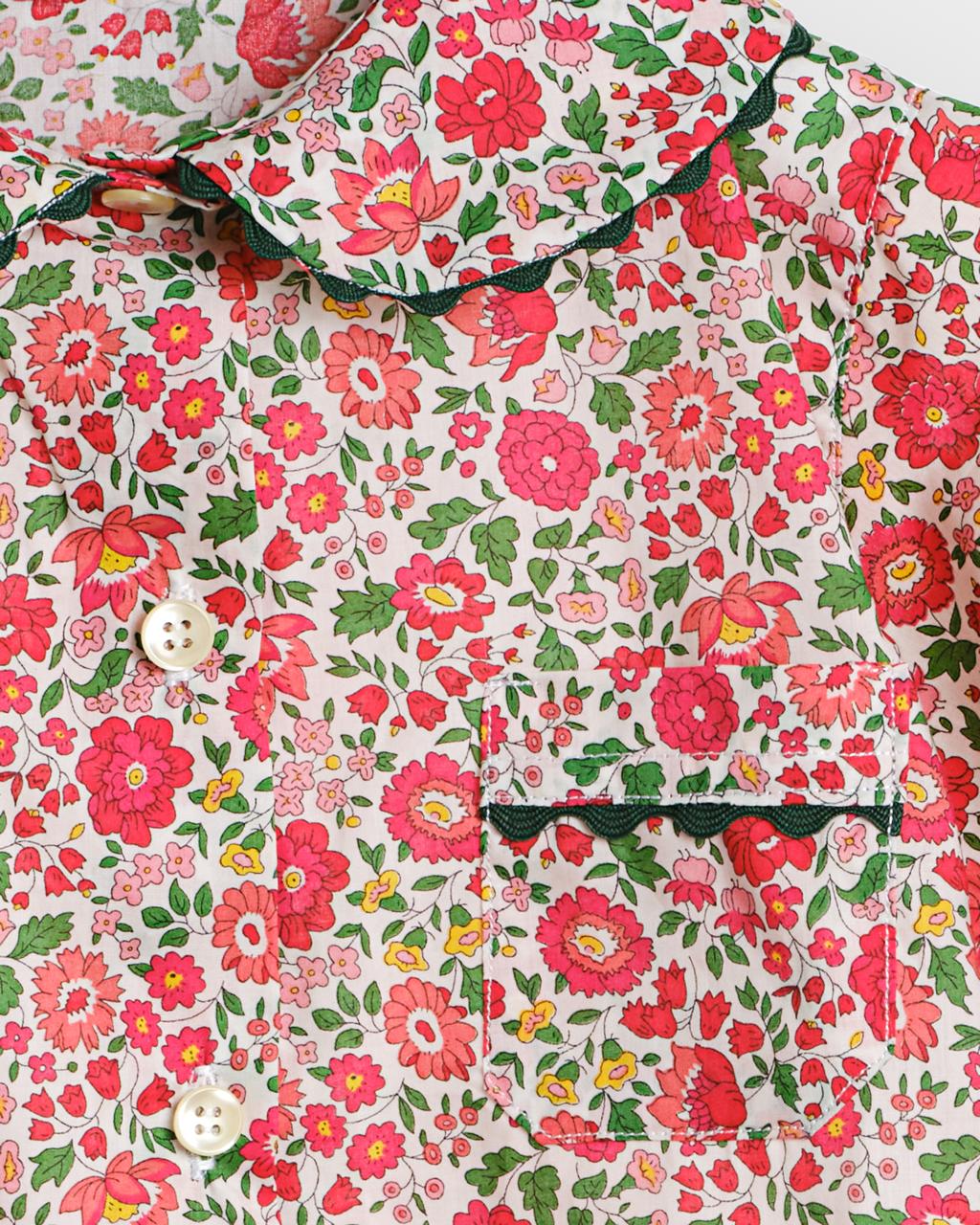 Delicate ric-rac trim adds a playful touch, while the elastic waistband ensures a snug and flexible fit for growing kids. This pyjama set brings Italian craftsmanship and Liberty elegance into your child’s nightwear routine.