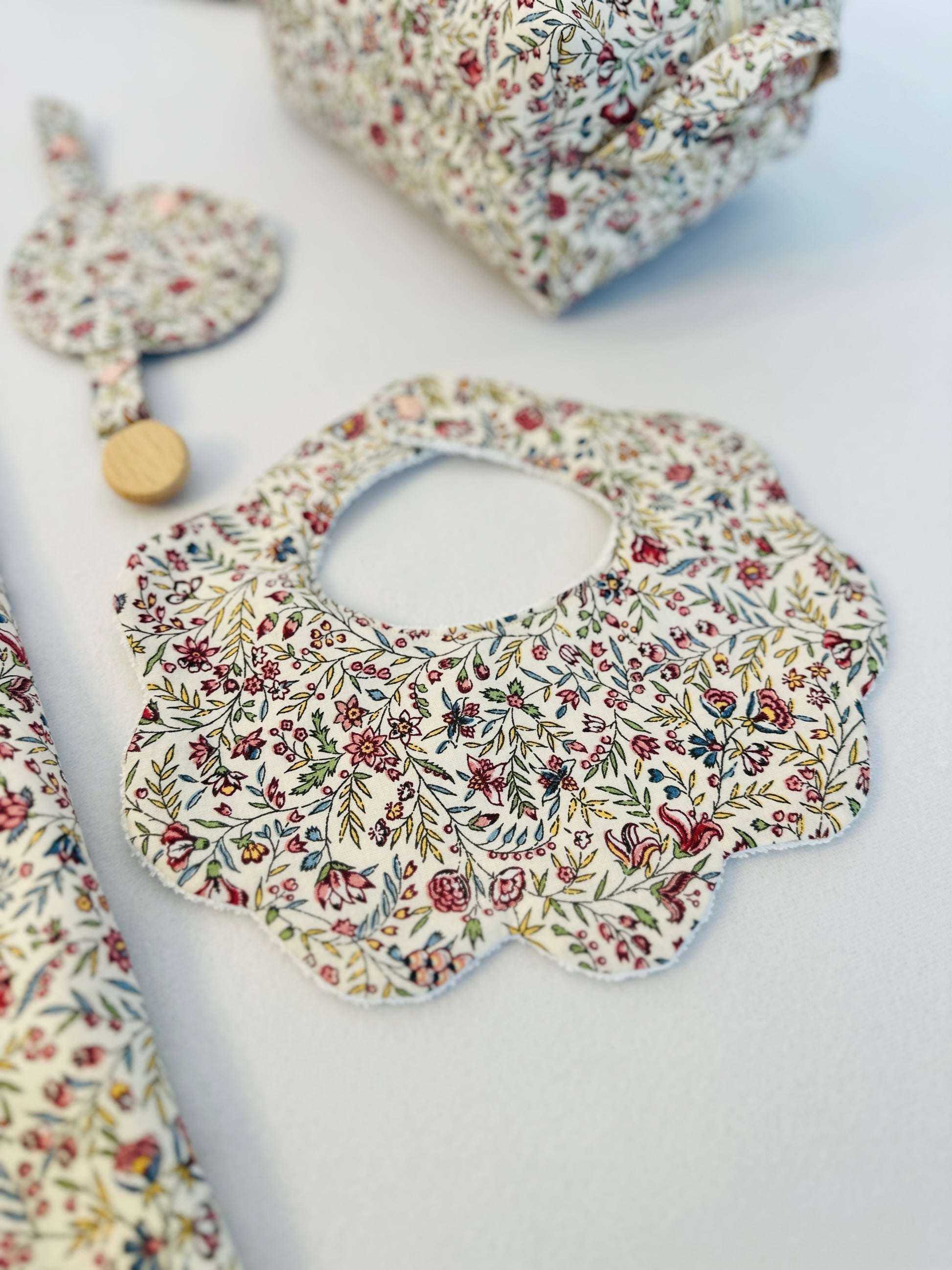 Each piece is lovingly handmade to order, and can be fully customized — select your favourite fabrics, trims, and add the baby’s name with elegant embroidery for a personal touch.